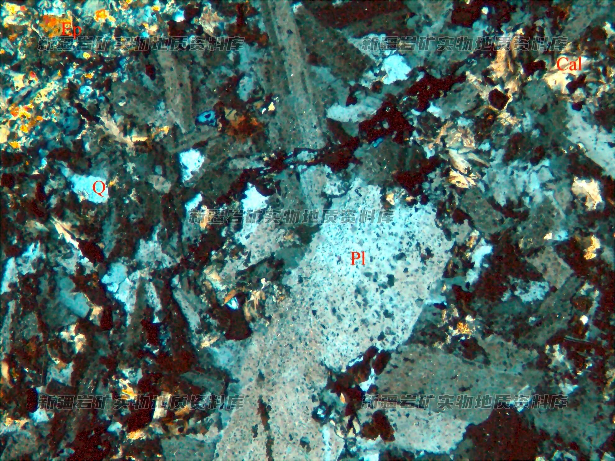 岩石特征描述: 岩石由斜长石(Pl)、角闪石(Hl)及石英(Q)等构成,并叠加帘石化(Ep)等次生蚀变。