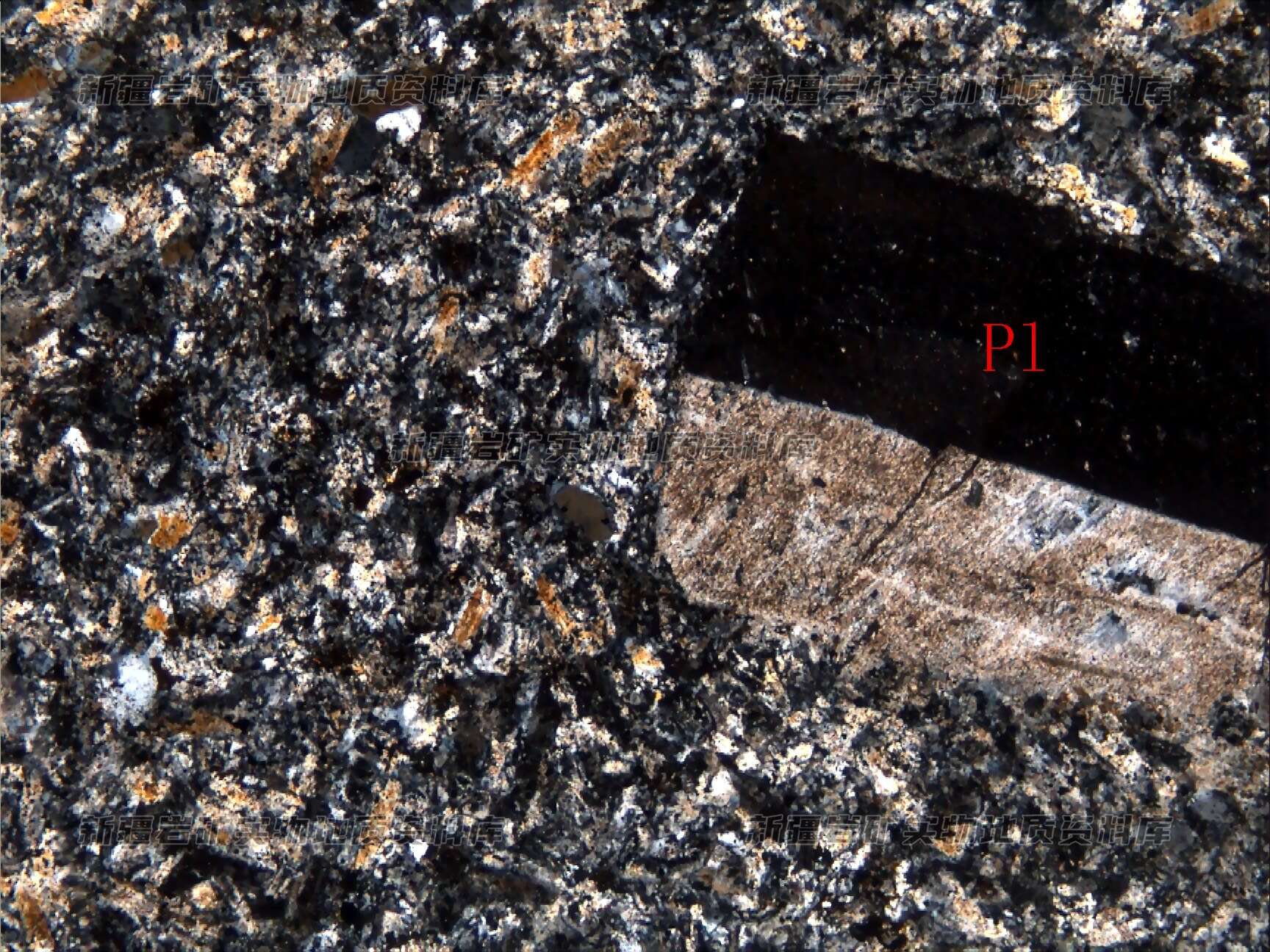 斑晶为斜长石(Pl),呈半自形板状,基质由细粒斜长石和少量的石英构成。