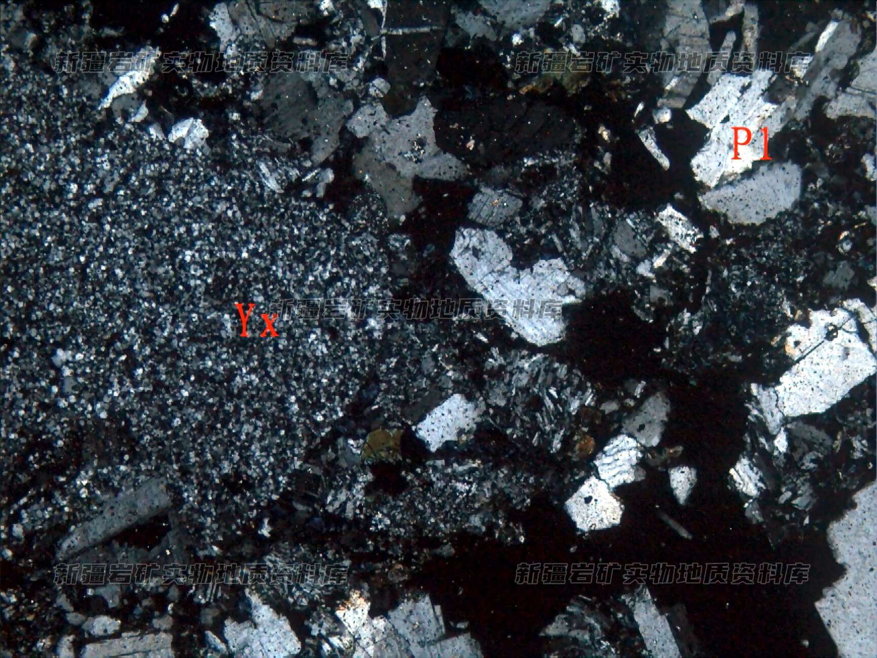 岩石特征描述: 岩石为岩屑(Y(+))、晶屑斜长石(Pl)及石英等构成,胶结物为绿泥石等。