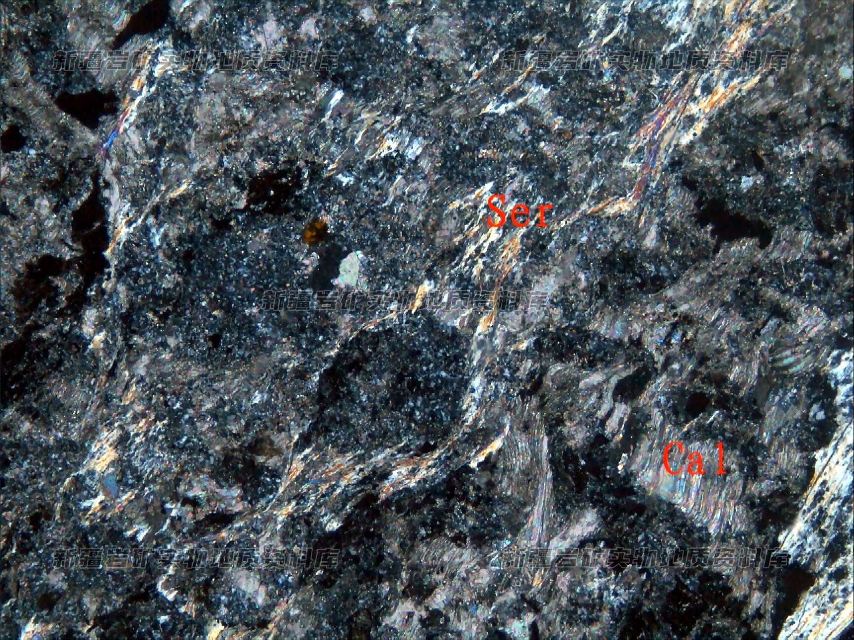 岩石在片理化之前有碎裂,裂隙由碳酸盐组成,细脉受片理化作用,方解石有纤维化,脉有变形皱曲等。
