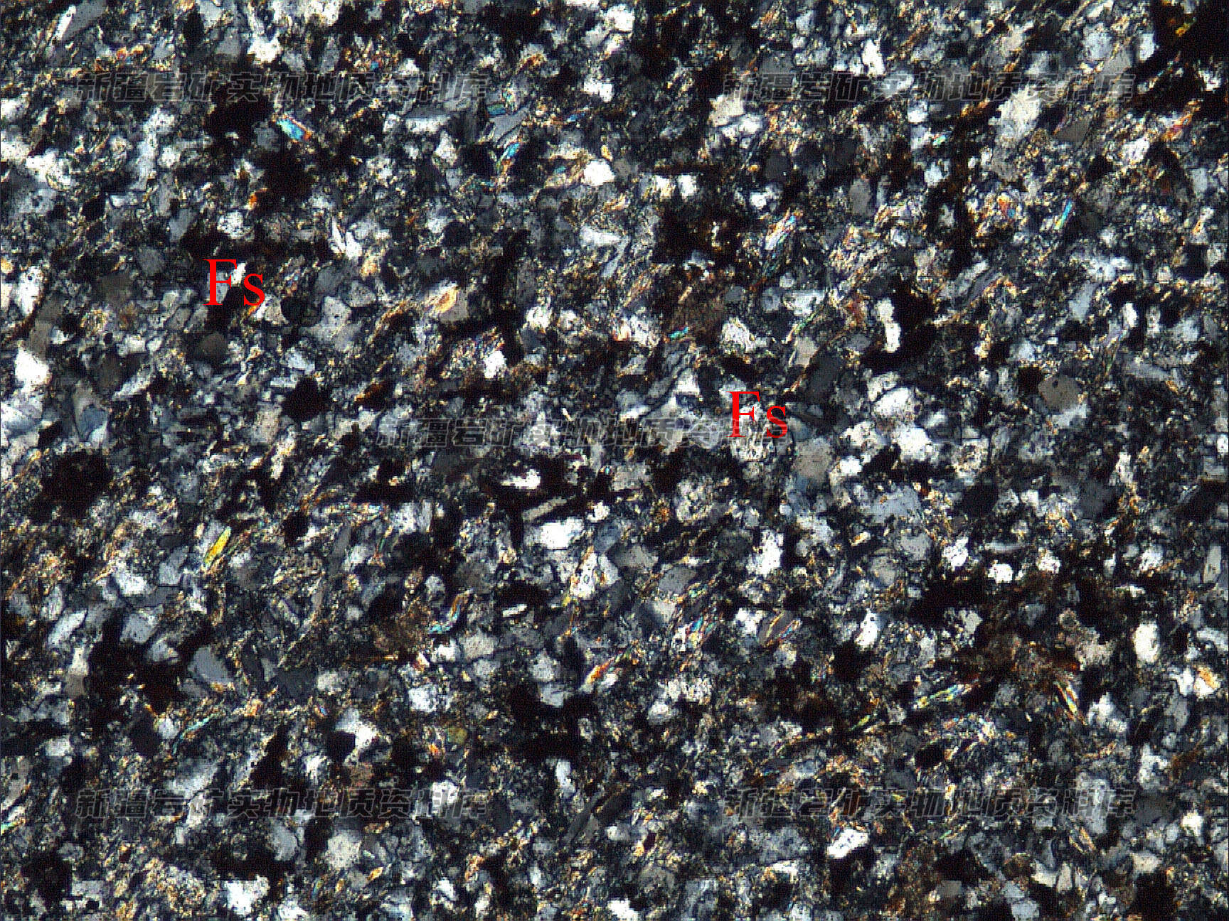 岩石特征描述: 粉砂状结构,岩石由长石、石英粉砂屑(Fx)及胶结物构成,次生蚀变为绢云母化、硅化等。