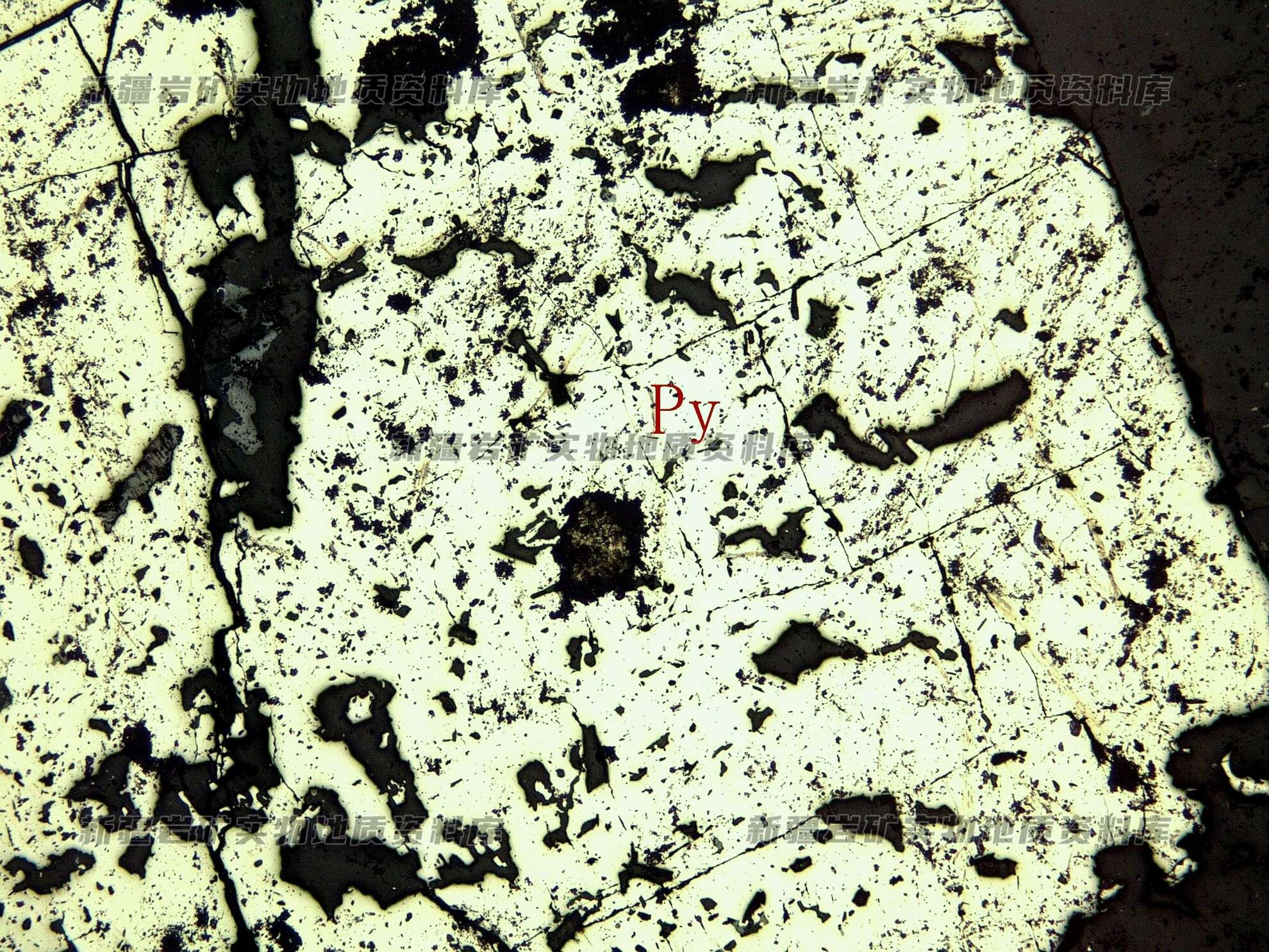 岩石特征描述: 黄铁矿(Py)结晶粒径很粗,大于6㎜,呈单晶产出。