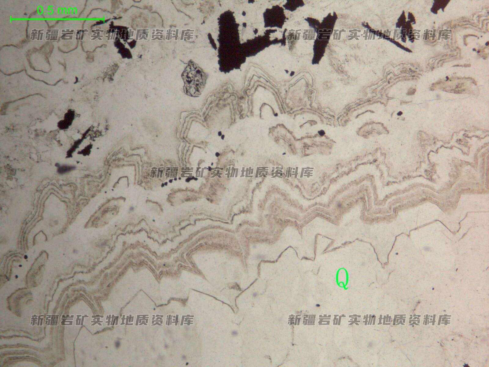胶体SiO2,已全重结晶成粒状石英(Q)