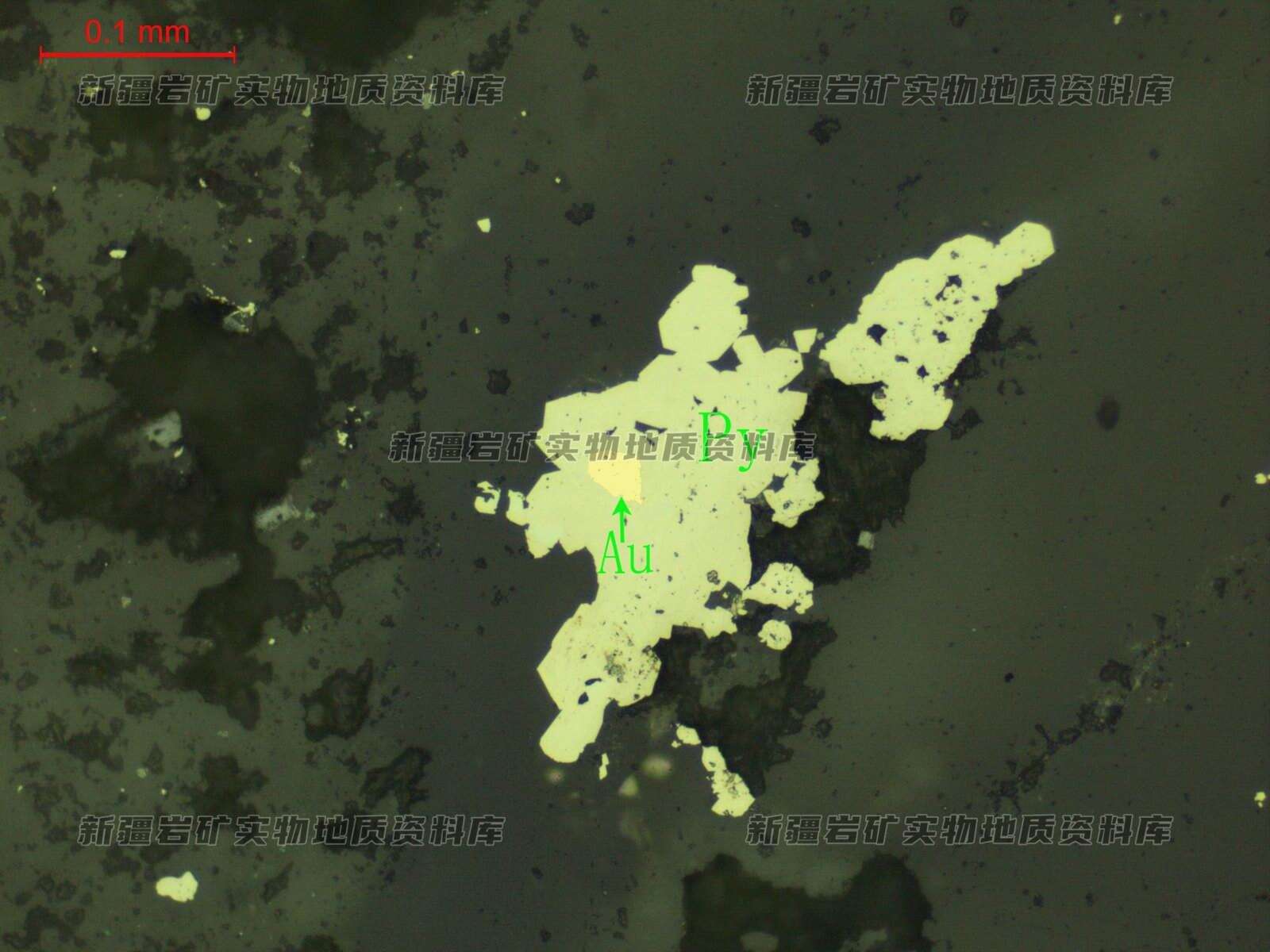 蚀变岩型金矿石中粒含银自然金(Au)分布黄铁矿(Py)粒中
