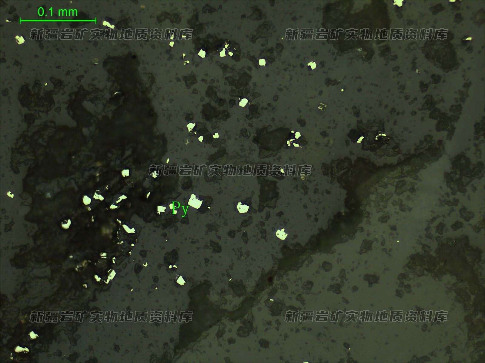 矿石黄铁矿(Py)含量少,呈星点浸染状分布。