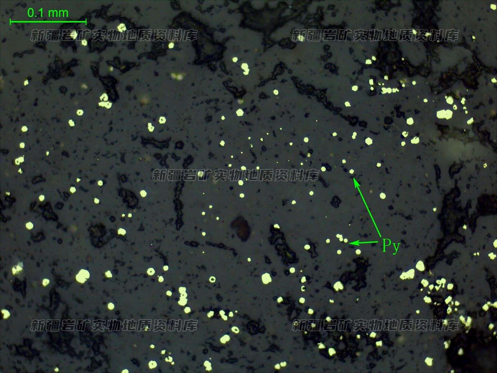黄铁矿(Py)呈稀散浸染状分布。