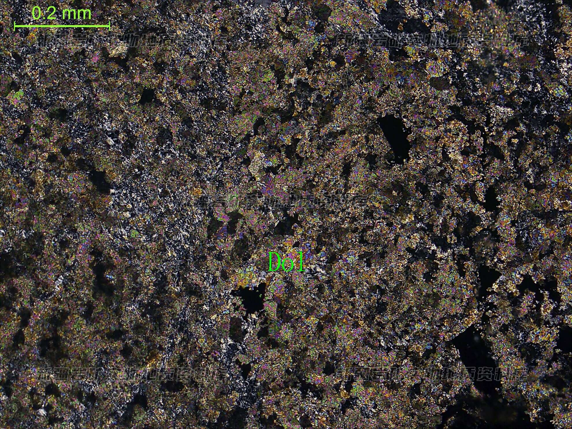 岩石白云石化,白云石(Dol)呈细粒集合体,粒径细,均匀分布,其颗粒及集合体沿延长方向定向排列。