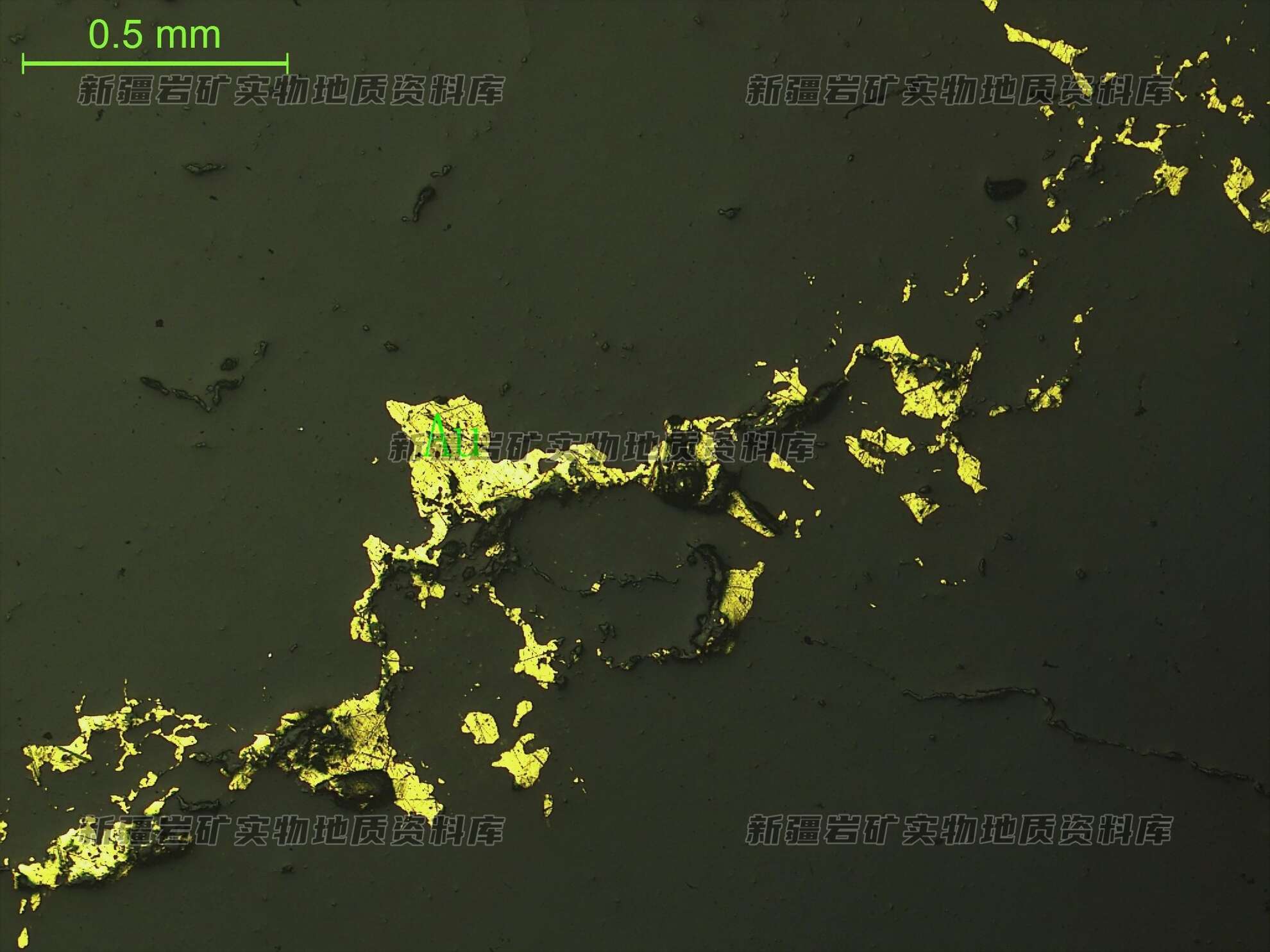 自然金(Au)呈浸染状分布于石英脉中
