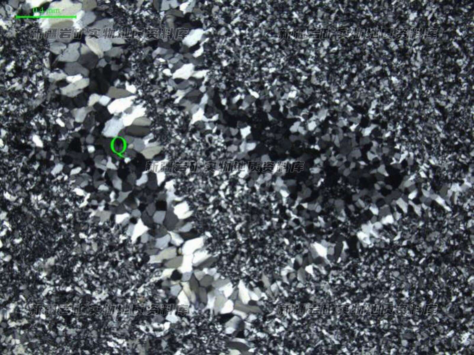 局部可见细粒石英脉(Q)。