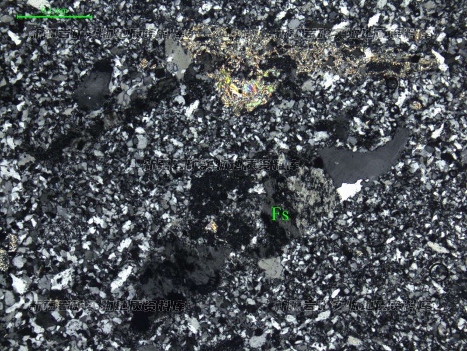 镜下可见长石碎屑(Fs),表面蚀变且多碎裂。