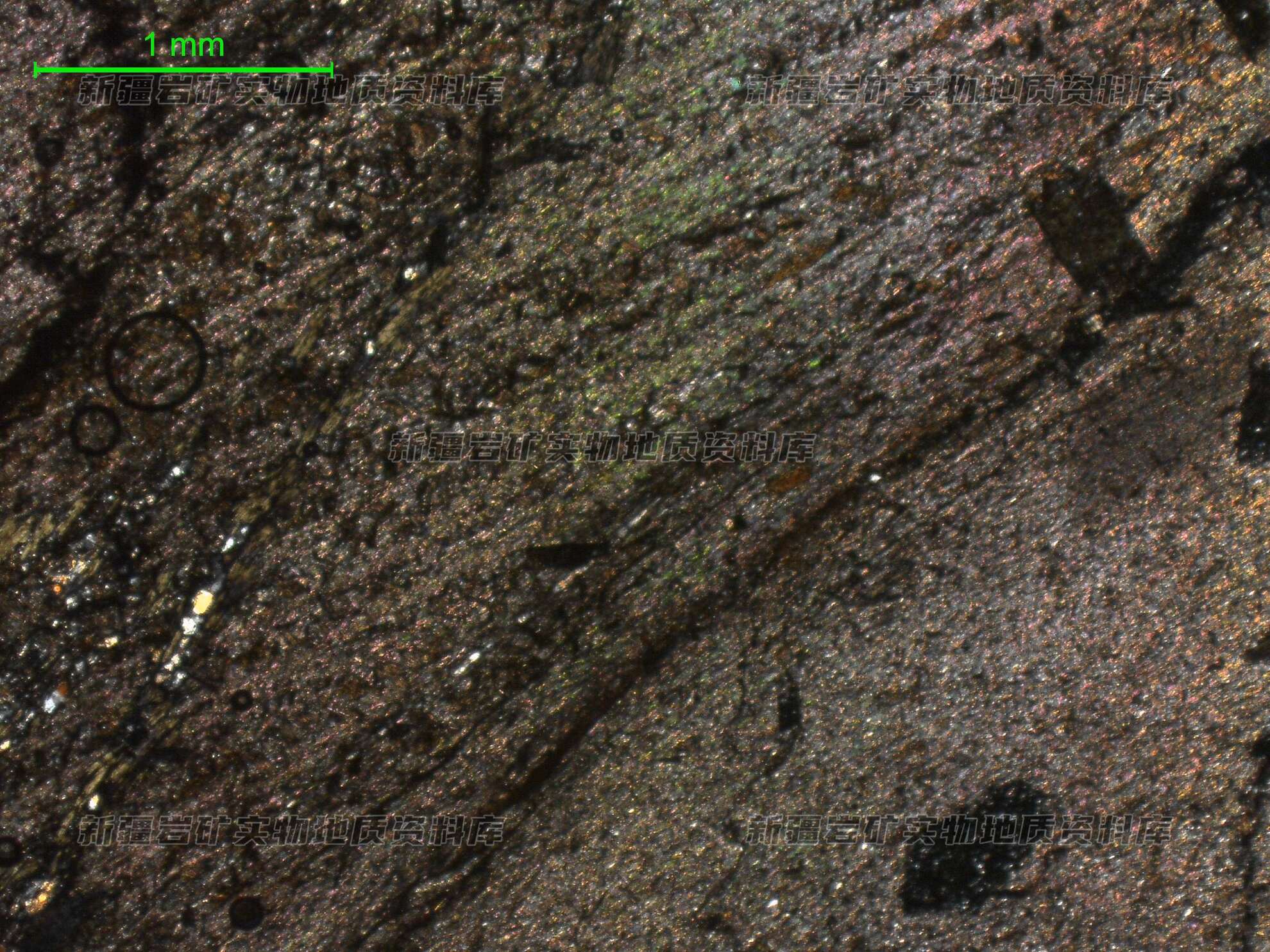 结构构造: 变余粉砂状结构、鳞片变晶结构 定向构造