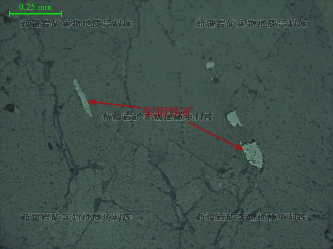 岩石特征描述: 光片中金属矿物含量极少,偶见铌钽铁矿。