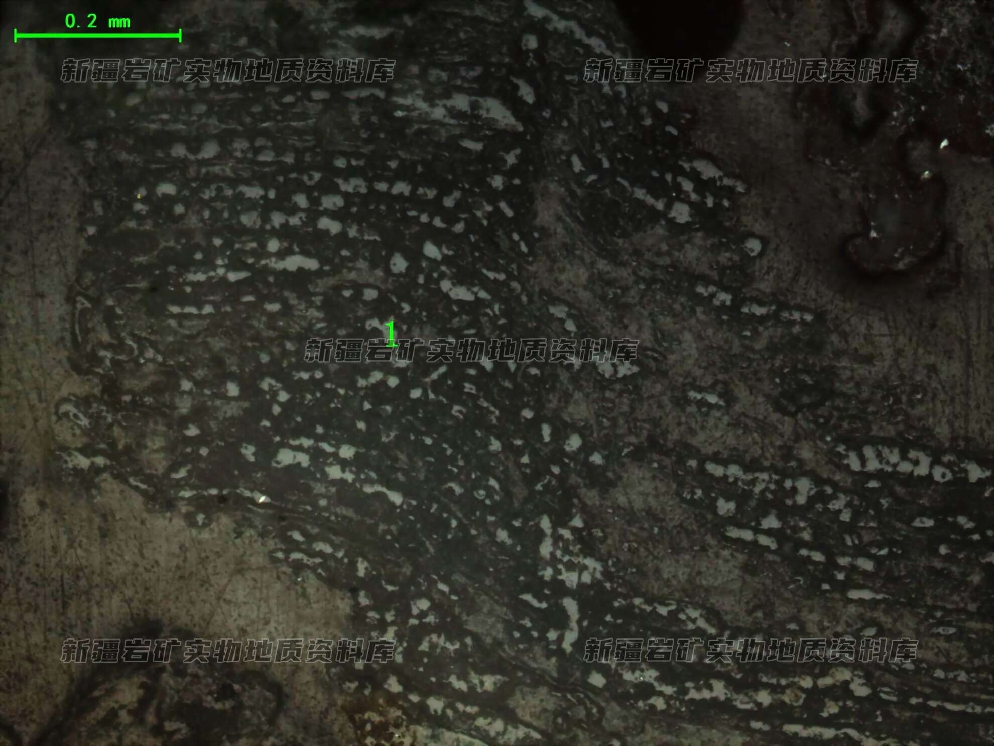 残炭(1)显示条带状构造,明显植物胞腔结构。