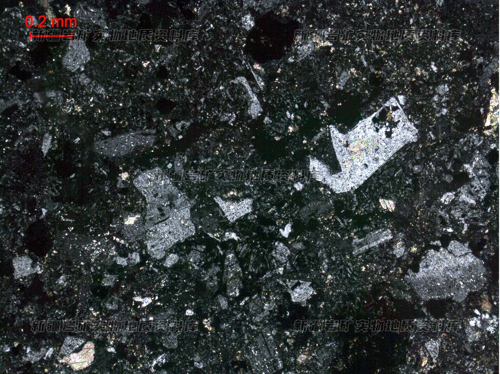 主要矿物及含量%: 长石晶屑30,石英晶屑5,岩屑5,杏仁体3,胶结物53,黄铁矿4