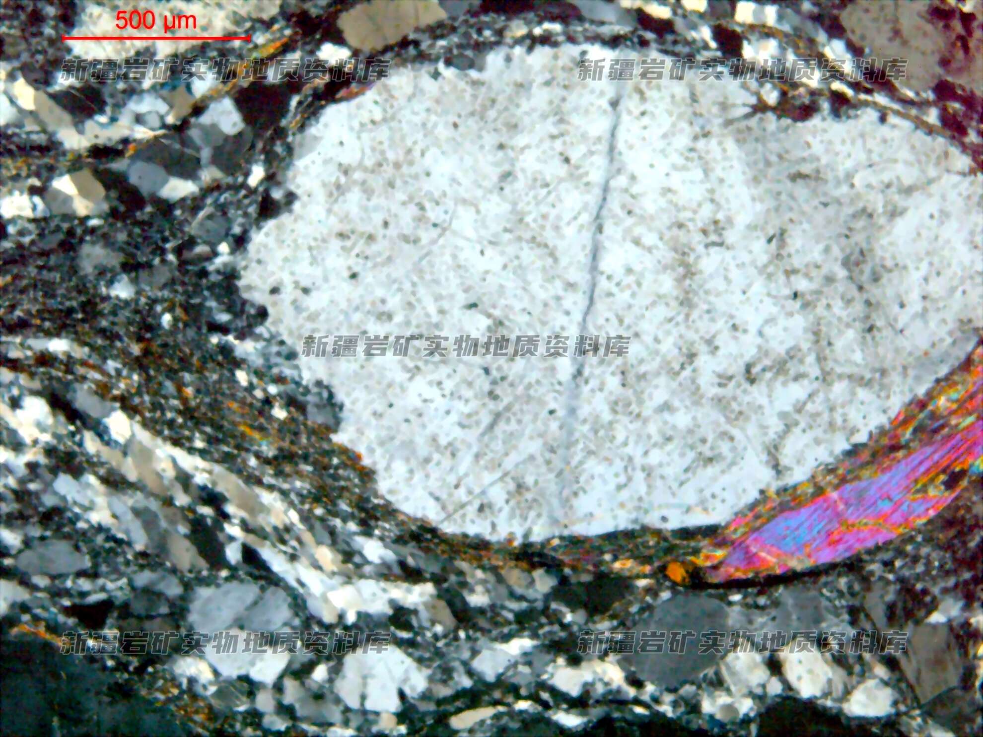 主要矿物及含量%: 斜长石65,石英25,黑云母1,白云母9,磷灰石少量