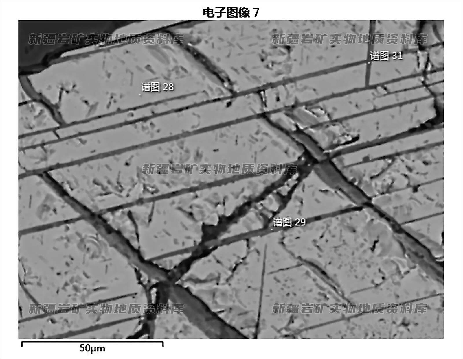 可见磁铁矿中出溶钛铁矿等矿物定向晶片,呈网格状。电子探针BSE-COMPO(背散射成份像)